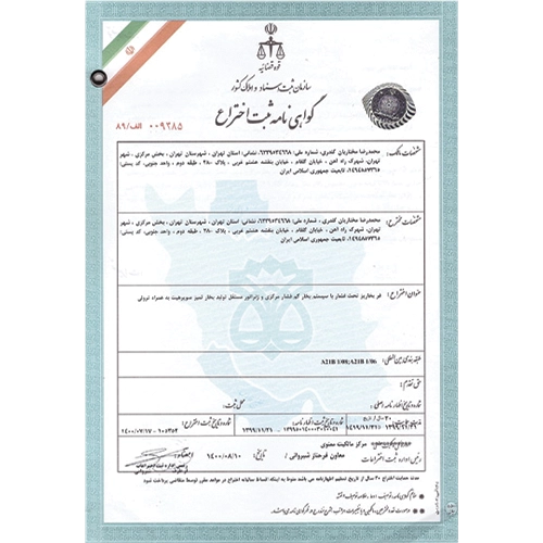 (۲۰۱۸)- Registering 1 Patent and 1 Industrial Design by receiving International and local Certificates through membership in .related associations here and Overseas
