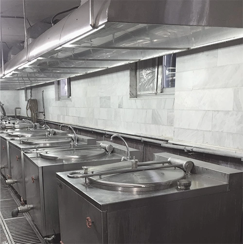 (۲۰۰۹) Considering our successful History in the FMC Industry with a request from Iranian Dairy Tycoon Mihan Company regarding the lack of quality of their Kitchen Equipment installed in their main plant therefore we started to manufacture high Pressure Central Steam Generating System for their Boiling Pans as a first attemp in Iran by us.